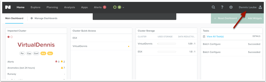 Since my user “dennis” was included in the above role mapping group, I’m going to log into Prism Central with that user.