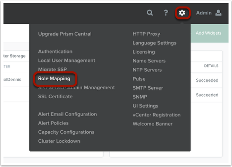 To setup Role Mapping, click on the “Gear icon” and then click on “Role Mapping”.