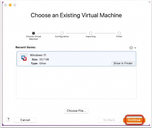 Importing the Parallels Desktop Virtual Machine