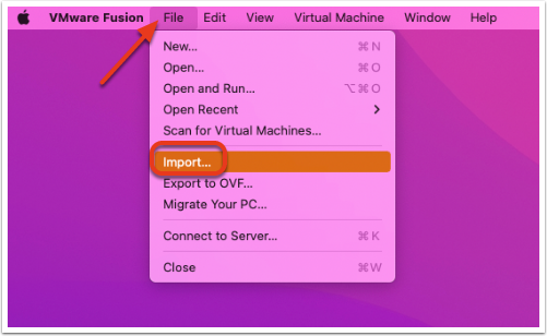 In VMware Fusion, under the “File” menu, choose “Import”.