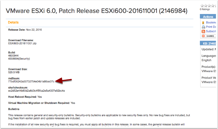 On the KB article link, look for the “md5sum” field, and copy the checksum for later use within Prism.